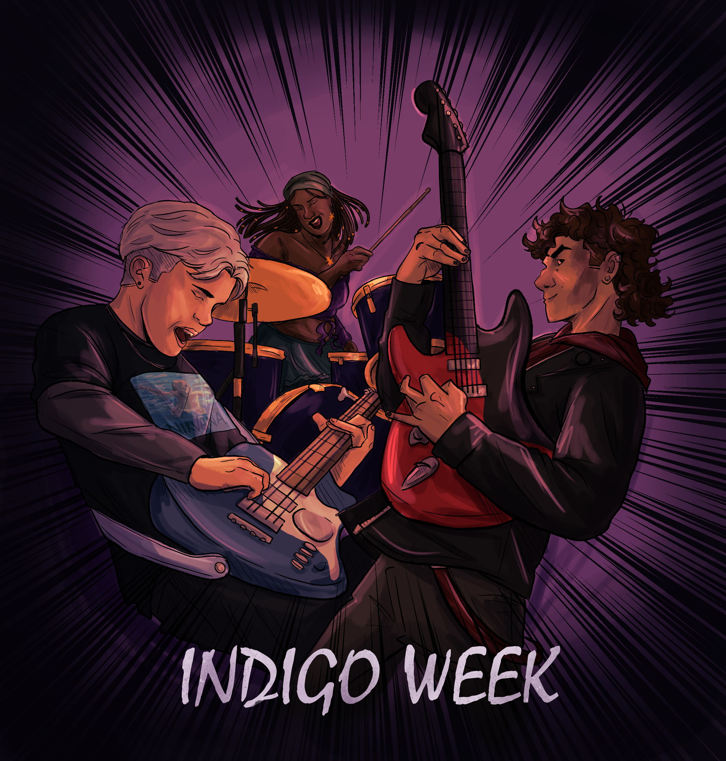 Art from our YouTube videos featuring the Indigo Week characters, and other art we’ve made for the comic!